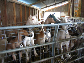 Lars (pictured above) is experiencing his first breeding season and by all appearances is doing a great job. He is Saanen buck and currently ranked the #1 Saanen buck on the American Dairy Goat Association Young Sire list (a statistical ranking for bucks that haven't sired any babies yet). Lars is wearing a harness with green chalk on it which helps us keep track of who he is breeding. When he is doing his job well, there should be lots of chalked up doe's.